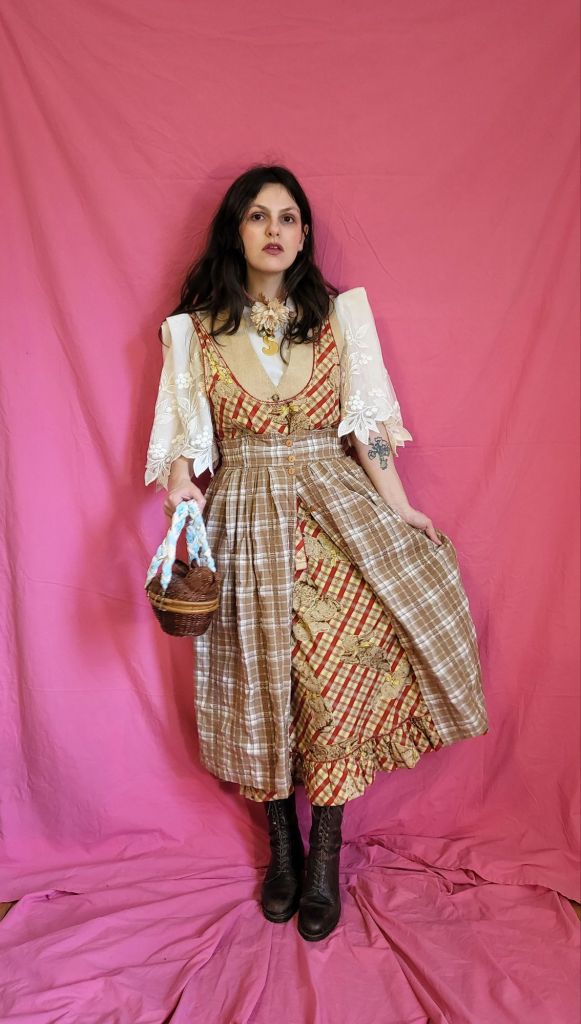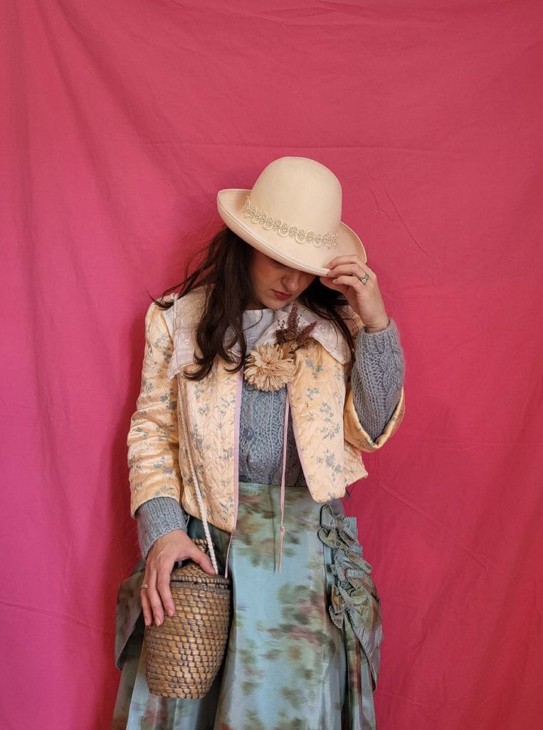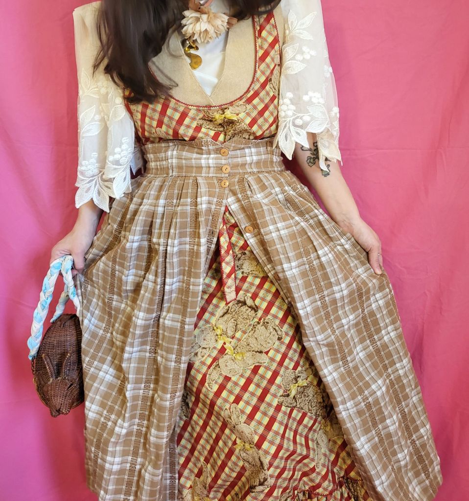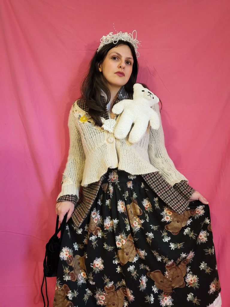 Okay, okay, you want to know if I placed any orders. I did, I did. One iconic floral bear print skirt, one bunny print plaid jumper dress both from Wonderful World, and a beautiful Kaneko Isao taffeta maxi skirt with a watercolor print and a bustle effect at the hips—oh, my! I was eager to style up my finds inspired by all the imagery I had been soaking up over the past few months while spiraling down this Kaneko rabbit hole.