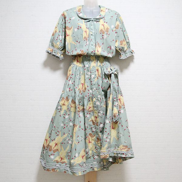 After much digging, I finally came across Mercari Japan. Here, I was able to browse through hundreds of product listings from Kaneko Isao’s own line, Pink House, and Wonderful World. There was a reoccurring theme of teddy bears and the bunnies that I was of course drooling over. There were so many pieces with amazing detailing, bows, ruffles, broches, layers, and mind-blowing prints. I found myself opening tab after tab to take a closer look.